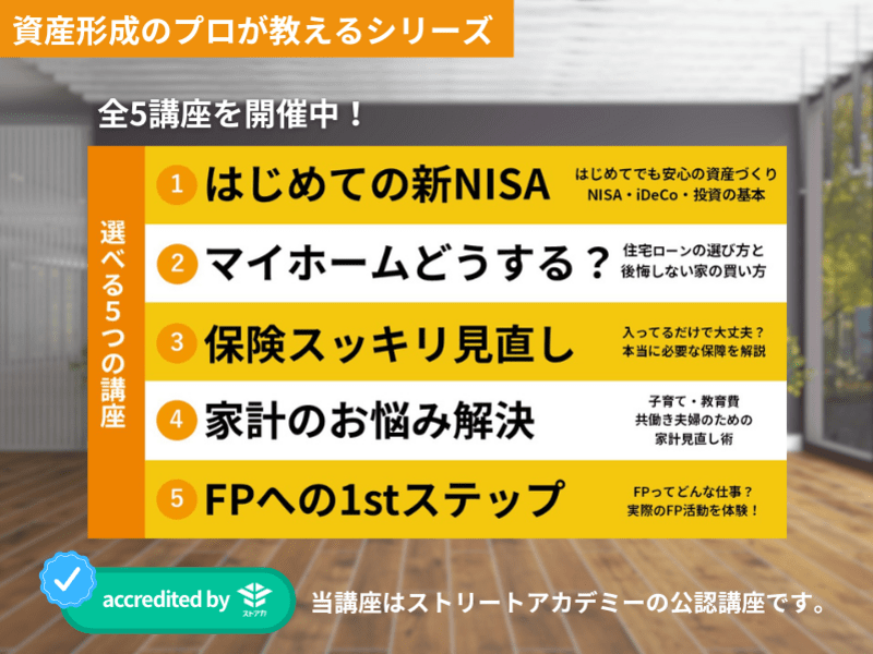 ライフプランを一緒に作りながら、日々の家計管理から保険・資産形成・住宅・老後資金まで幅広く学べます。