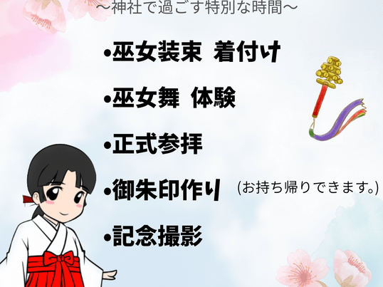 巫女体験に初めて参加しました。装束を着たり舞を踊ったりと新鮮で楽しめました。加えて神社の参拝(鳥居や手水等)方法も学べて今後の参拝時に役立つことも知れて良かったです。