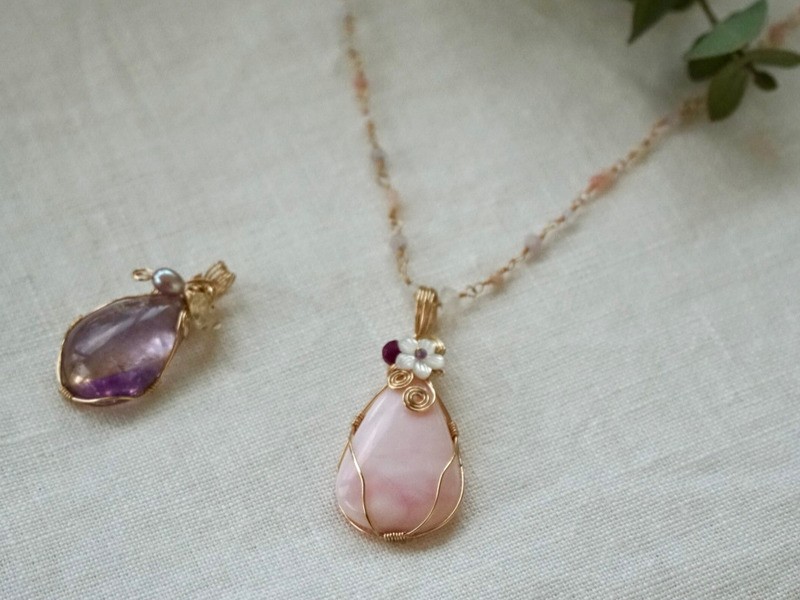 天然石とワイヤーを使ったハンドメイドの作品は、高級感と美しさ、癒しを兼ね備え、あなたにとって世界に一つの特別なアクセサリーです。