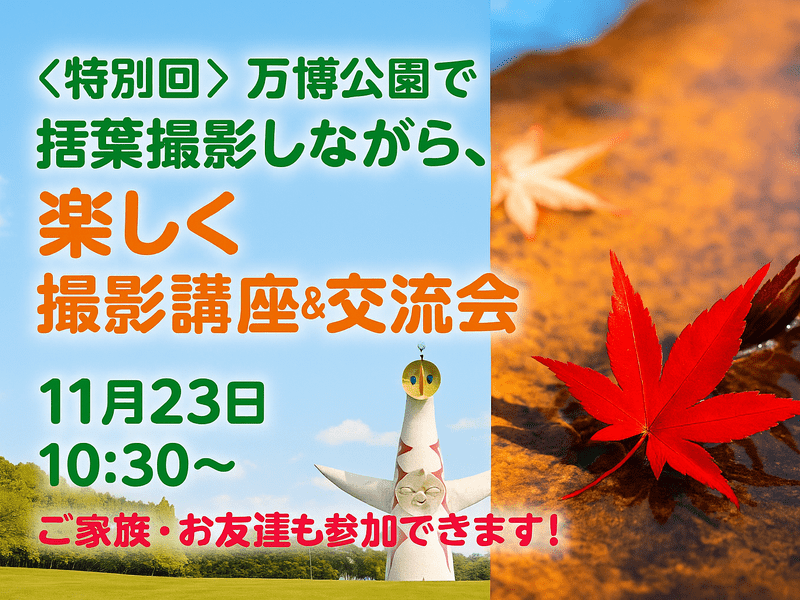 *最低申込参加者3名とさせて頂きます*家族やお友達も参加可能(代表者1名の料金)。紅葉撮影を楽しみながら受講者同士楽しい時間を過ごしましょう