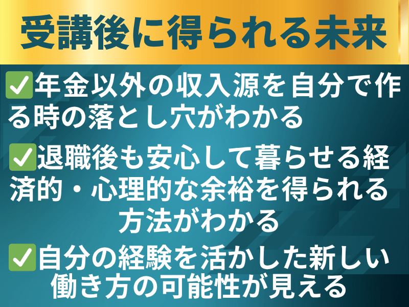 笑顔が絶えないわかりやすい講座で、楽しめました。人生設計や今の日本社会でどう生きるべきかアドバイスを頂けました。