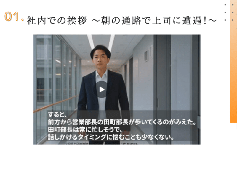 ストーリー仕立てで、ビジネスシーンの中に自然と入り込める構成がとても印象的でした。