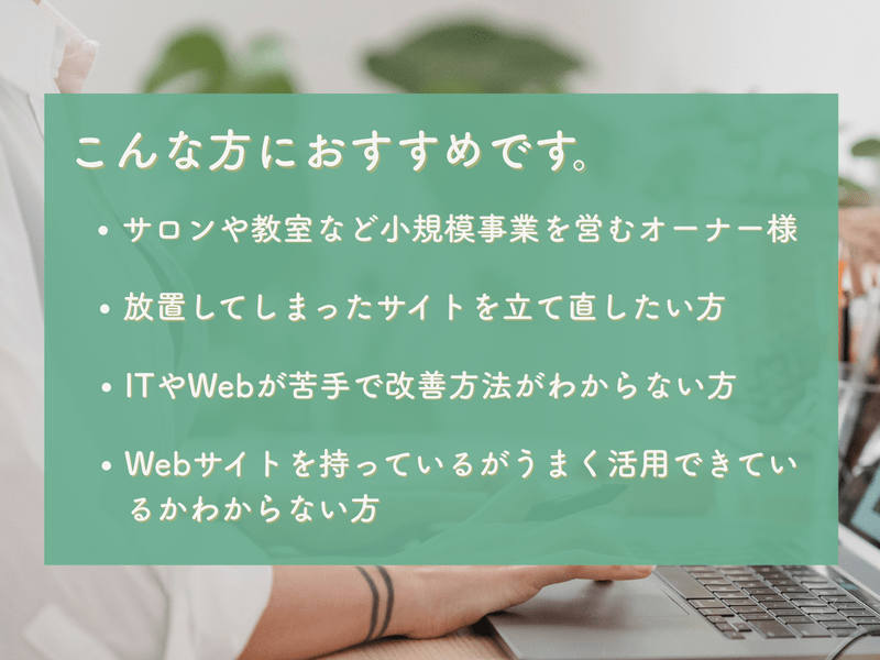「信頼できる伴走者」として、あなたのWeb活用を後押しし、安心して事業に専念できる環境を整えます。ぜひ一緒に、未来へ育つWebサイトをつくっていきましょう。