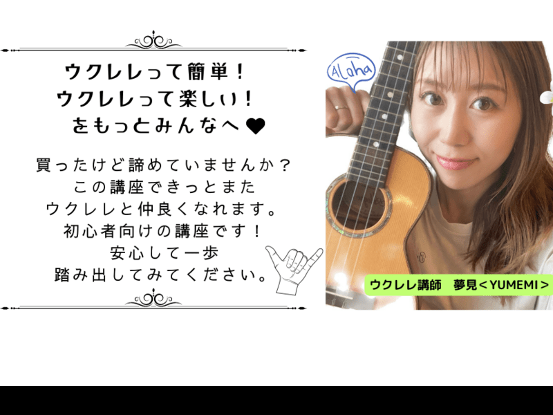 ウクレレ初心者ですが、とても丁寧で分かりやすく教えていただきました。