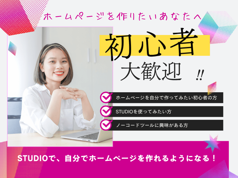 STUDIOやWixを使ったノーコードWeb制作を中心に、個人事業主やデザイナー志望の方向けにレッスンを行っています。