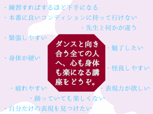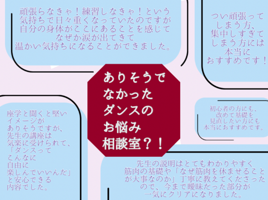 自身のダンスに対して色々と悩みがあったため受講させていただきました。