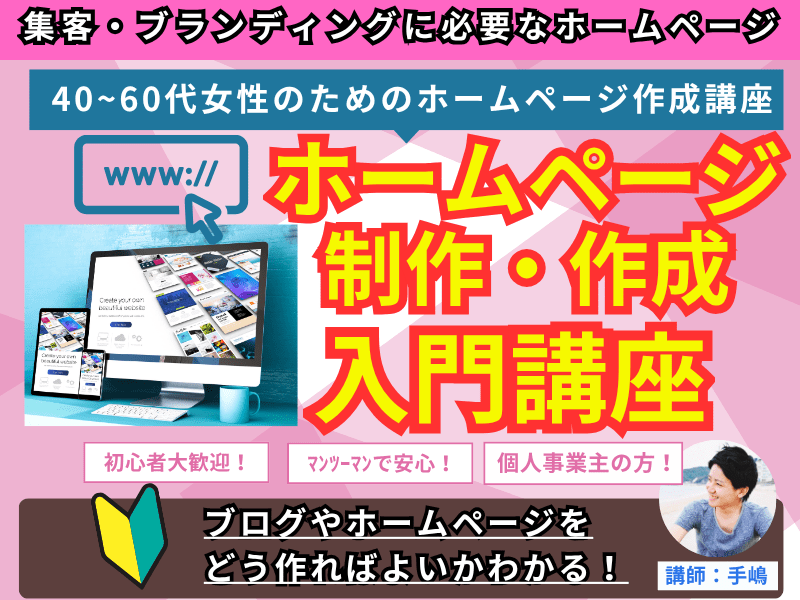 【40~60代女性向け🔰】ホームページ制作入門講座✨集客・宣伝・プロモーションなどこれから起業・副業を目指す方向け!