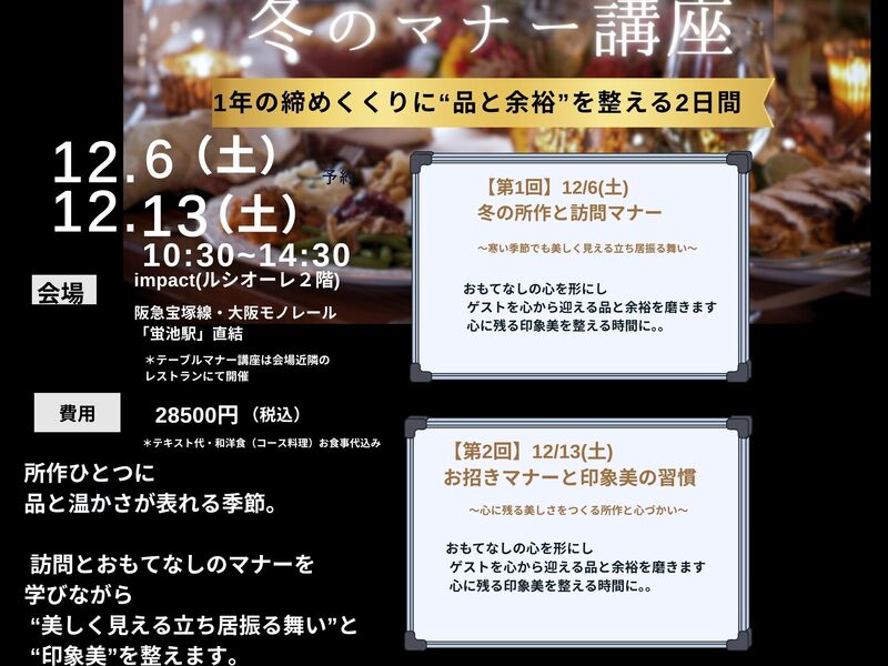 🍱和食テーブルマナー実践(会席料理付)では、