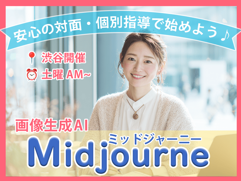 初心者でも安心! 画像生成AIのスタンダード「Midjourney」を対面にてわかりやすく教えます。要望に合わせた個別カスタマイズ講座です。
