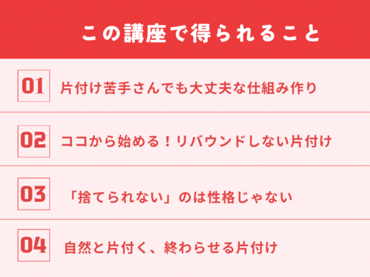 簡単な片付け方をわかりやすく説明していただき、とても役に立ちました。