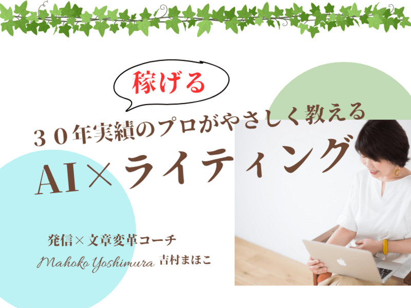 起業・副業したい女性のためにライティング(AI活用法含)を教える専門家の吉村まほこです。