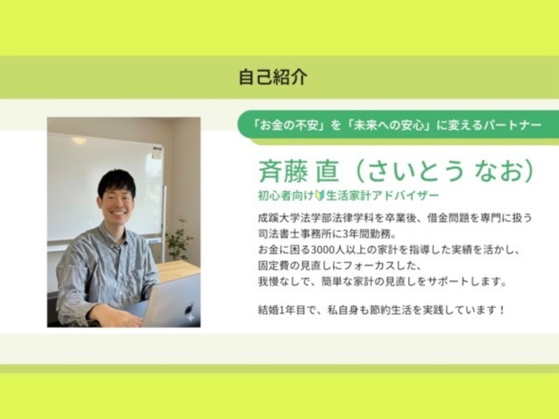 お金に困る3,000人以上の家計をヒアリング・アドバイスをした経験を活かし、初心者向けの生活家計アドバイザーをしております。