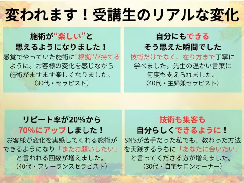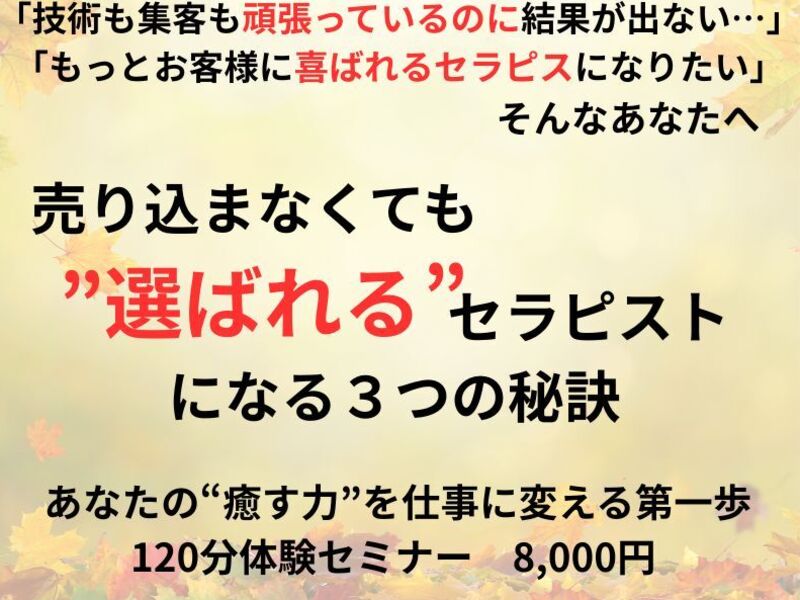 技術だけじゃない!信頼を生む伝え方と差別化の考え方を学び、お客様に「またお願いしたい」と思われる“選ばれるセラピスト”へ✨あなたにもできる!