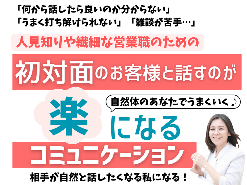初対面のお客様との会話や、交流会での立ち居振る舞いにずっと苦手意識があり受講しました。講師の方はとても親しみやすく話しやすい雰囲気で、気づけば自分でも驚くほど自然に本音をさらけ出していました。