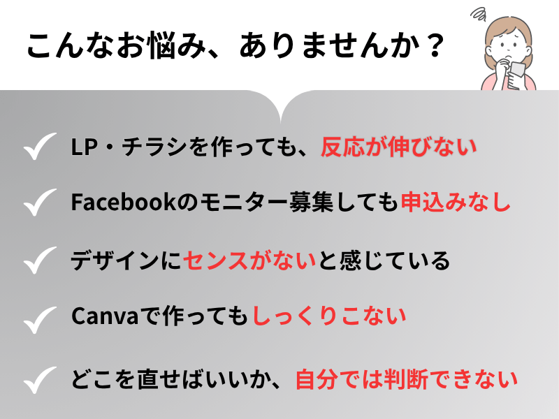 自分がデザインした画像について、どこが問題でどこをどう直せば良くなるのかを、具体的かつ丁寧に教えていただき、とても腑に落ちました。なんとなく「これでいいのかな?」と感じていた部分が、プロの視点から明確に言語化されて、とても学びが深かったです。
