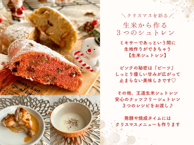 【お家のお米】と野菜がパンになる! 生米から作るクリスマスシュトレン♪ビーツを練り込んでピンク色♡その他2つの生米シュトレンのレシピも♪
