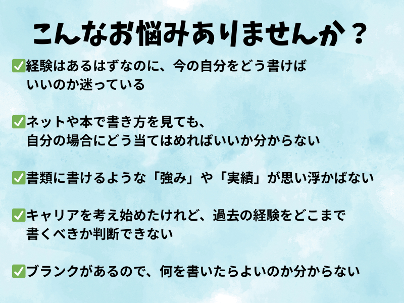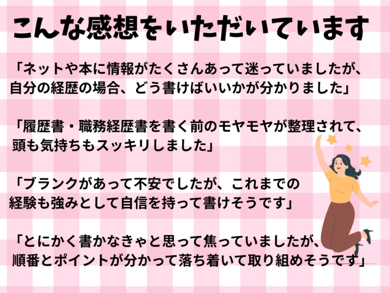 「履歴書・職務経歴書を書く前のモヤモヤが整理されて、