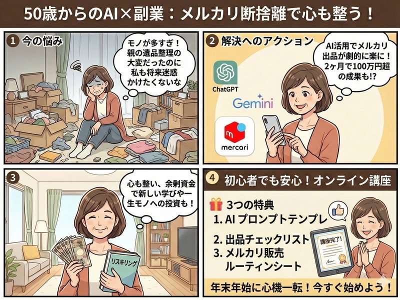 アナログ人間の私に、根気良くお付き合い頂きました。メルカリは、購入のみで、売却はハードル高かったのですが、講座中に、出品したものが、売却出来てびっくりです。売却の手順が面白くて、これから楽しめそうです。有意義なお時間ありがとうございました。有村先生、チャーミングで楽しい方でした。