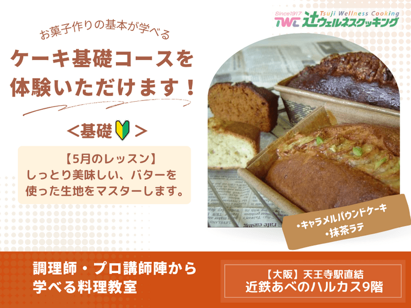 初心者の方も安心!「ケーキ基礎」レッスンは、お菓子作りが初めての方、レシピ本には載っていない泡立て方やコツを習得したい方にオススメです。