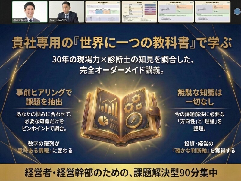 単なる経験則だけでなく、執筆を通じて体系化した「再現性のある経営理論」と、中小企業診断士としての知識、そして泥臭い現場経験を掛け合わせた、どこよりも実践的なレクチャーを提供します。