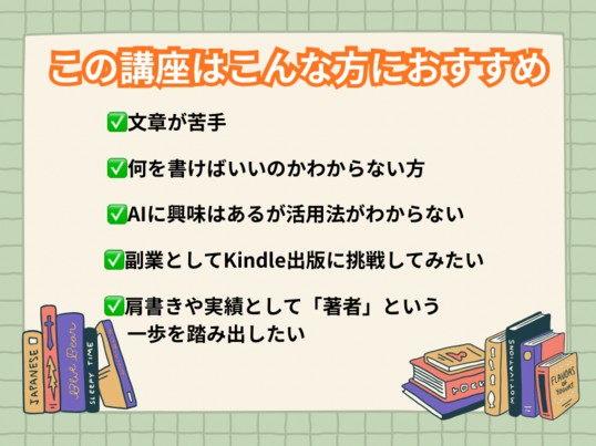 2025年3月からはAIを活用したKindle出版に挑戦し、これまでに5冊を出版しました。