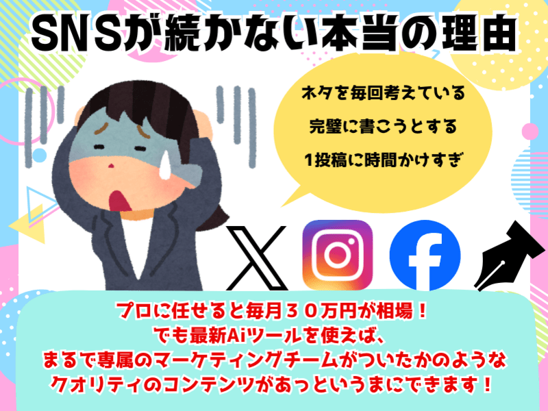 文章が苦手でもOK!何を投稿するかもAIがリサーチしてくれる!あなたはAIに指示して投稿するだけ!最新AIツールで今度こそ続けられるSNS