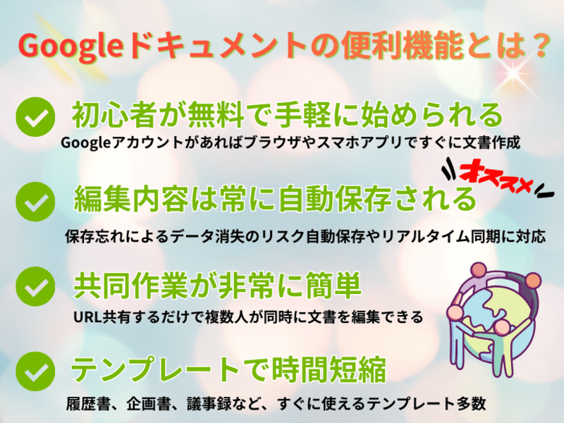 もう手間取らない! Googleドキュメント超入門🌈AIを活用して文章を「短時間で仕上げる」ための基礎力をマンツーマンで学べます🍀!!