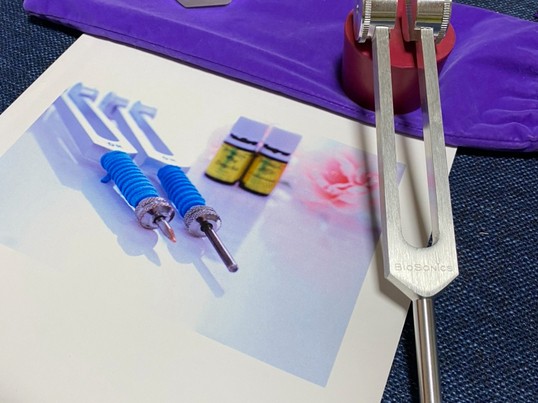 反応点にへヴィーフォークと呼ばれる重石つきの音叉を使い、そのツボに音叉の周波数(振動)を