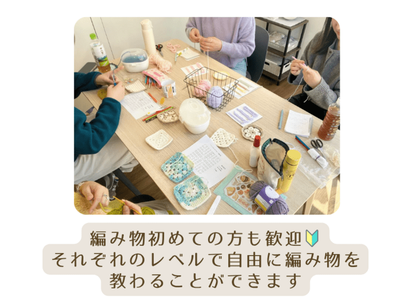 【定期開催】編み物初めてさんも歓迎🔰それぞれのレベルで編み物を自由に教わることができる少人数のグループフリーレッスン🧶