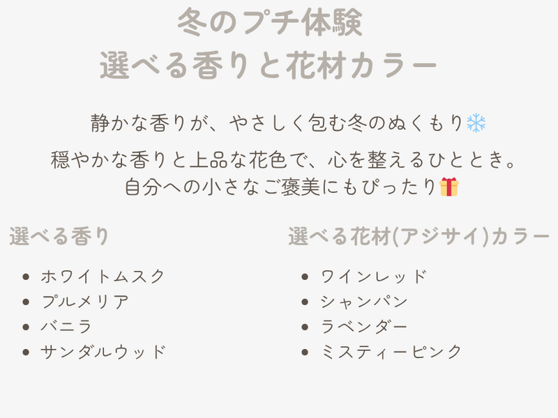 少人数、お花がはじめてでも大丈夫♪ 季節のハーバリウム&アロマワックスサシェのプチ体験