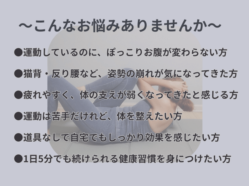 思うように回復しない体力、体形のくずれ(しわ、たるみ)、肩や腰の痛み、そして健康診断での脂質異常症...