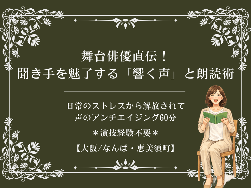 枯れない声と滑舌改善!さよならほうれい線!俳優の技術を使って眠っていた表情筋と肺活量を呼び覚ます「美容・健康・リラックス」の体験型レッスン。