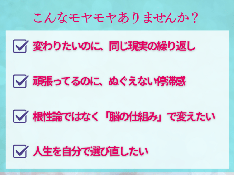 この講座を受けて、変われなかった理由を意志の弱さだと思っていた考え方が、大きく変わりました。