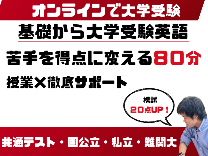 英語が苦手な大学受験生大歓迎の大学受験英語に特化した個別指導講師です。