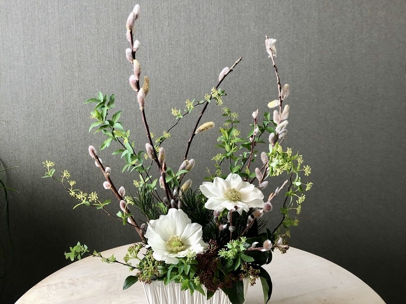 枝を花瓶に入れるだけだと寂しい、和を感じるアレンジメントを飾りたい、枝をカッコ良く飾りたい、そんな生徒さんの声に応えるレッスンです。