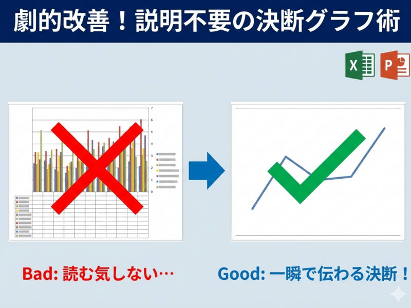 「とりあえずExcelのボタンを押してグラフを作っていませんか?」 「色や線が多すぎて、『結局何が言いたいの?』と上司に聞かれていませんか?」