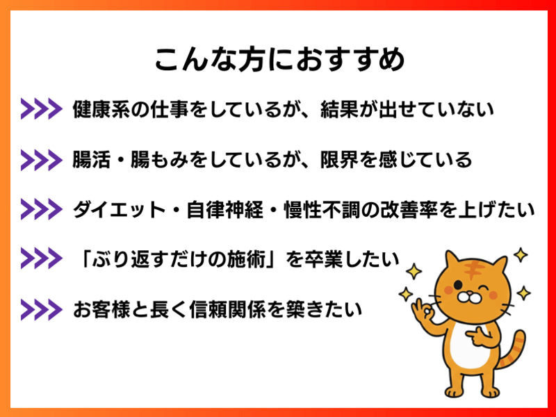 腸活ダイエットの指導をしていますが、どうしても痩せられない方や、不調を改善できないのは何故か知りたくで受講しました。