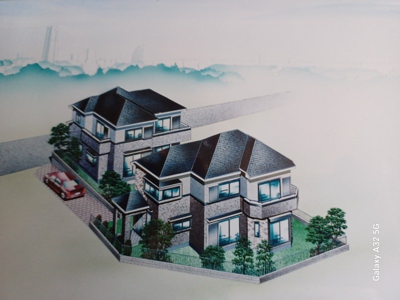 着彩のための住宅の外観モデリングの下描きを完成させる。