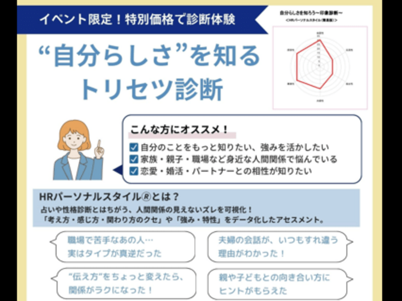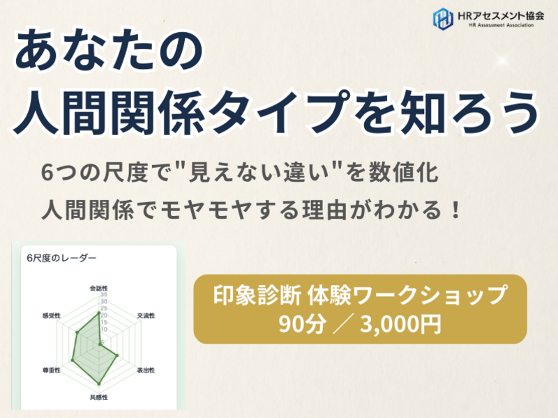 「なぜ分かり合えないの?」が腑に落ちる。自分の“当たり前”を知り、人との違いをやさしく理解する印象診断体験。仕事・恋愛・家族のモヤモヤに