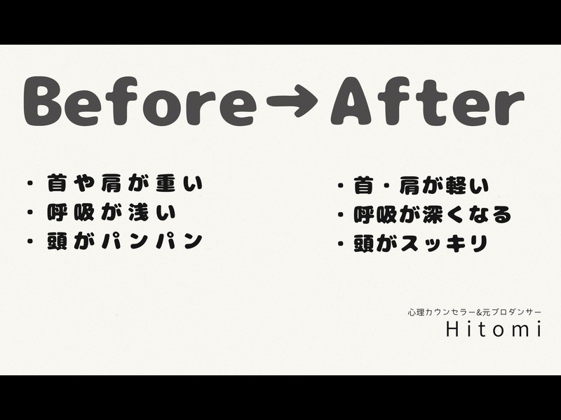 ピラティスを教えていらっしゃる先生とのことで、どこをどう動かすと身体が軽くなるのか、ほぐれるのか細かく教えてくださり、私の場合は肩周りや首周りが特にポカポカしてとてもリラックス出来ました!