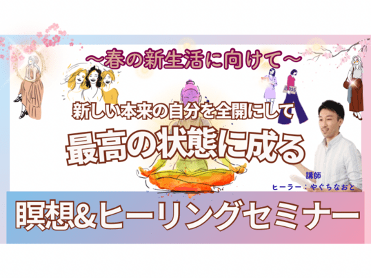 本講座は、私みきたわかながイベントの企画主催となって、ヒーラー・やぐちなおと氏を講師に迎え瞑想&ヒーリングセミナーをするものです。