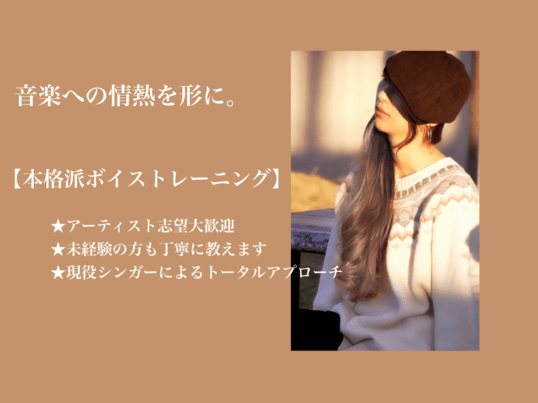あなたの声の悩みに寄り添い歌声を磨いていきます。基礎力を底上げし自由に表現出来ることを目指します。音楽への情熱を形にしましょう!