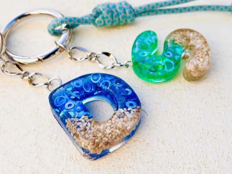 レジンの砂やラメパーツを閉じ込め、海のような雰囲気に。