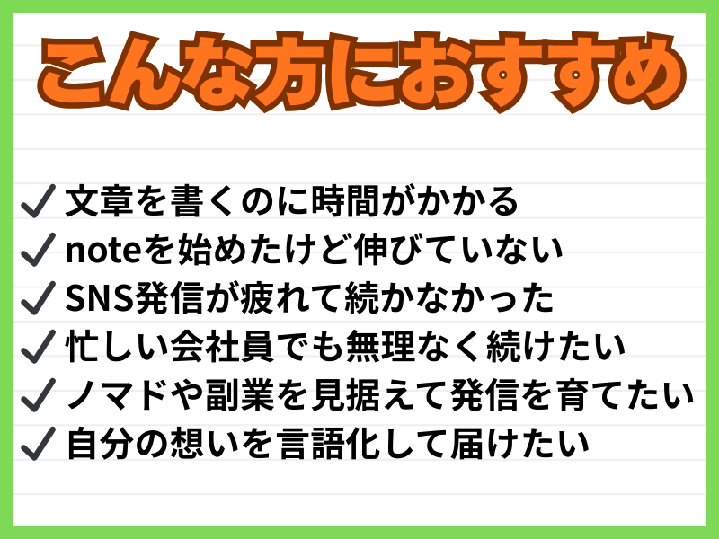 元々自分ならではの方法でnote記事を作成していたため、すごく時間をかけてしまったり、記事を書かないといけない…といった悩みまで抱えていました。