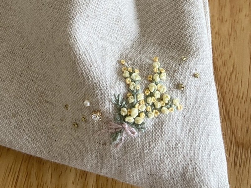 暮らしで使える、春のミモザ刺繍