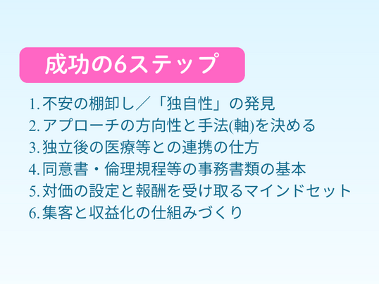 あなただけの「オンリーワンのサービス」を作り上げ、具体的な集客方法まで一緒に考え抜きます。