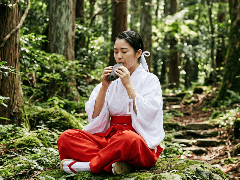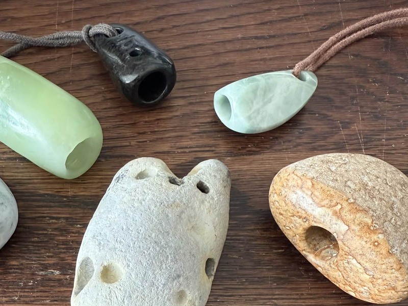 ②石笛への吹き込み方(唇の当て方、角度、息圧)