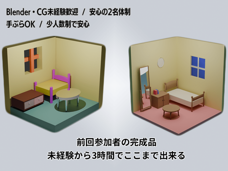3時間で3Dミニルーム完成✨初心者歓迎 PC持ち込み/無料ソフト体験/定員6名の少人数制&2名体制で安心サポート