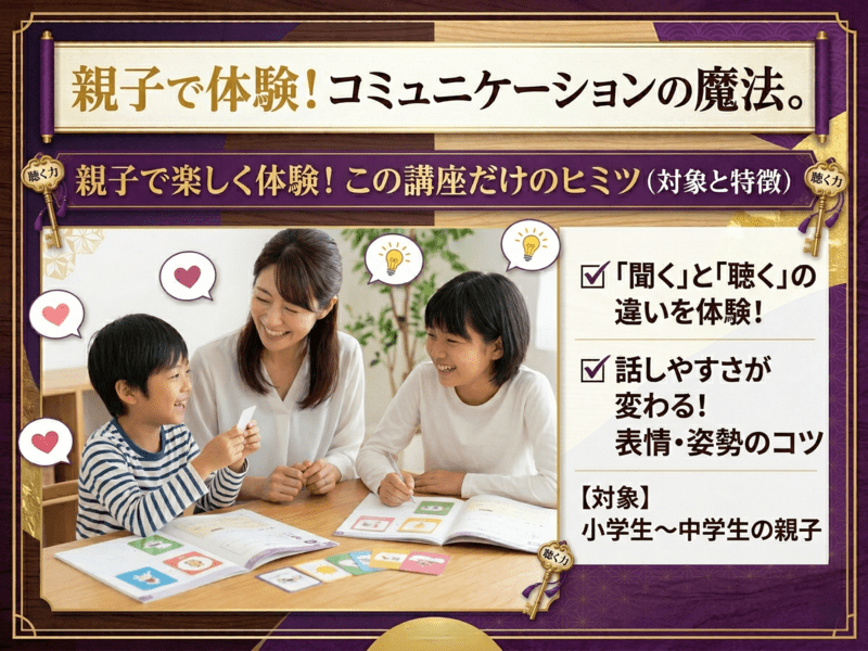 子どもが「もっと話したい!」と思う聴き方があります。 親子で楽しく体験しながら学ぶ、コミュニケーションの魔法。|雑談|会話|傾聴