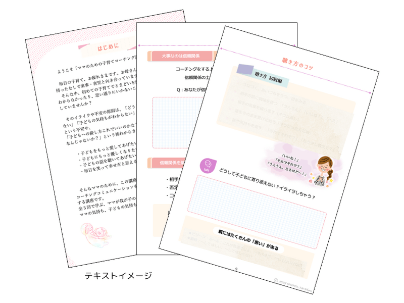 子どもの自己肯定感を育てるコーチングコミュニケーションと、ママ自身の心の土台を整える講座です。